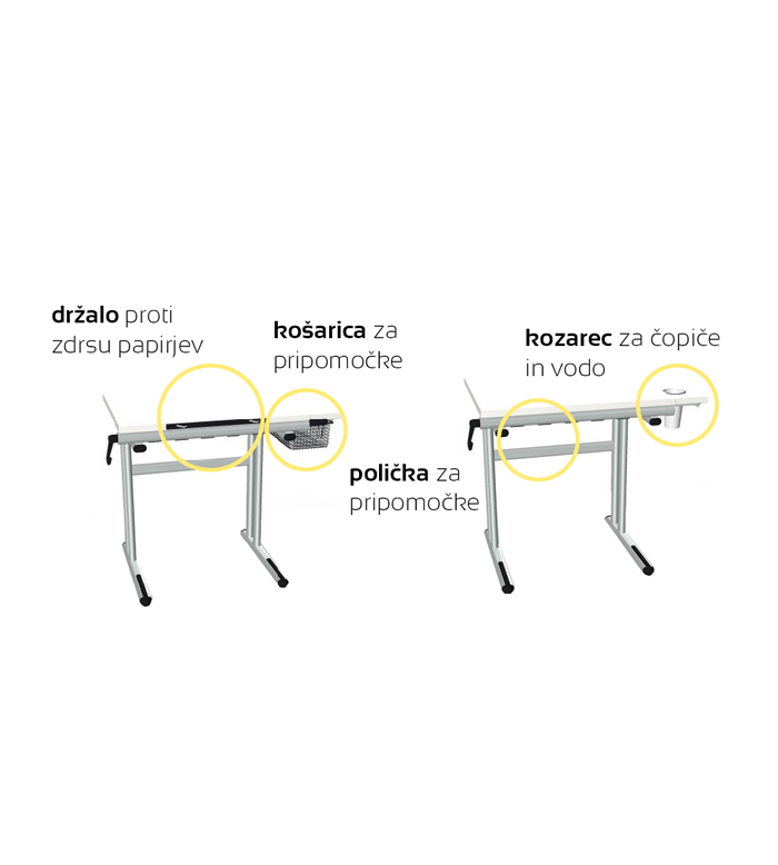 | Višina mize | Fiksna višine mize glede na DIN EN 1729 standard - 76cm |