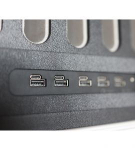 Polnjenje poteke preko vgrajenih 10-ih USB priključkov.