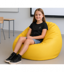 Nova dimenzija učnega protora z vrečo za sedenje, ki omogoča učenje in delo na tleh v udobnem položaju.