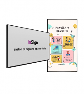 InSign – zaslon za digitalne oglasne deske je sodobna rešitev za prikaz dinamičnih informacij, promocij in digitalnih menijev. Omogoča enostavno upravljanje vsebin ter profesionalen in privlačen prikaz sporočil v trgovinah, gostinstvu, poslovnih prostorih in javnih ustanovah.